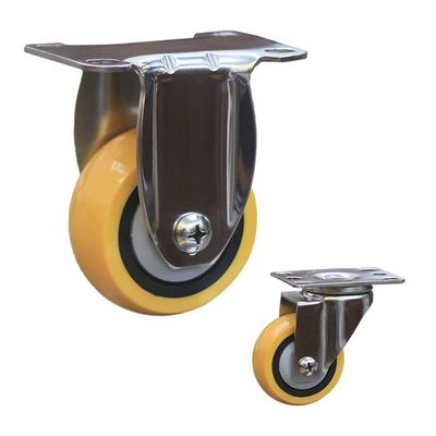 176 باوند 75 ملم البوليوريثان الأصفر الدوران متوسطة الواجب عجلات الفولاذ المقاوم للصدأ
